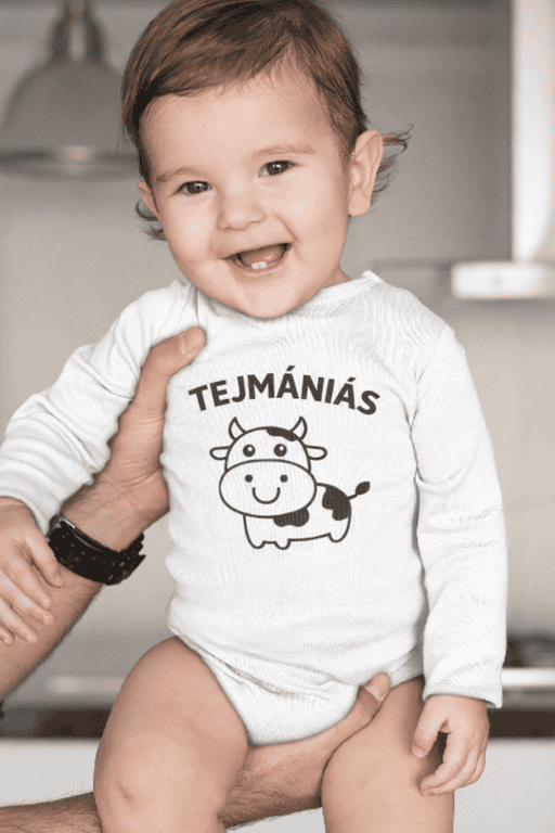 🐮 Tejriadó mini kiadásban – a TEJMÁNIÁS megérkezett! Ha itt az etetés ideje, a kis főnök nem kér magyarázatot: ez a tehénkés baba body pontosan azt üzeni, amit a pocak gondol. 😄