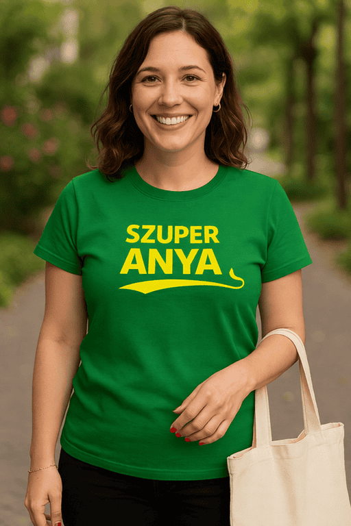 Ha a házban Szuper Anya van, még a Wi‑Fi is jobban működik. 😄 A vidám „SZUPER ANYA” felirat mindent elmond: ki viszi a napi hős küldetéseket! Tökéletes ajándék humoros anyukáknak. 💚