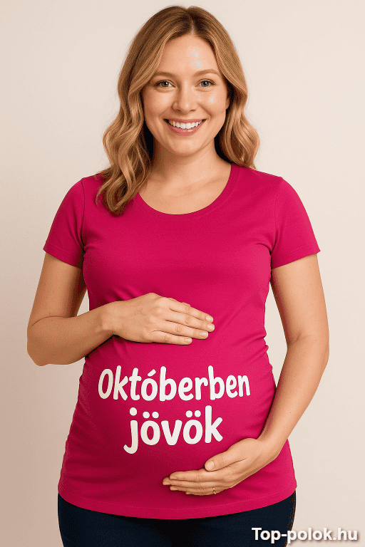 Van az a pillanat, amikor már mindenki sejti… te pedig inkább kimondatod a pólóddal: „Októberben jövök”. Ez a poénos felirat egyszerre cuki és kicsit pimasz – pont ezért működik. 😉