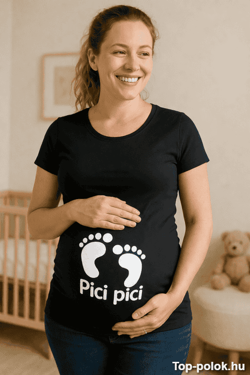 A kismama póló pici pici a tökéletes „sejtetős” poén, amikor már alig bírod magadban tartani a nagy hírt. A „Pici pici” felirat egyszerre aranyos és kicsit pajkos – pont annyira, hogy mindenki értse, miről van szó. 😉