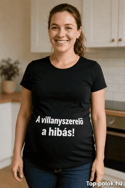 Ha olyan vicces kismama póló ajándék kell, ami nem cukiskodik túl mindent, akkor megtaláltad. Az „A villanyszerelő a hibás!” felirat pont az a csípős humor, amitől a fotók és a sztorik is emlékezetesek lesznek. 😉