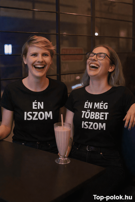 Ajándéknak azért zseniális, mert nem kell magyarázni: ránézésre érthető, fotókon is üt, és garantáltan beszédtémát csinál belőletek. Ha egy igazán emlékezetes páros ivós ajándék póló a cél, ezzel betalálsz. 🥂