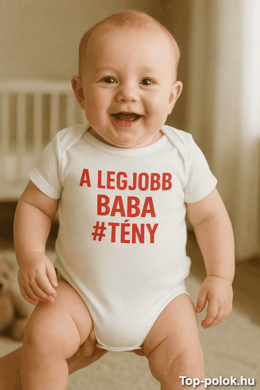 Ha olyan vicces baba body ajándék kell, ami az első pillanatban mosolyt csal a rokonok arcára, ez telitalálat. Az „A legjobb baba #TÉNY” felirat egyszerre aranyos és pimaszul magabiztos – pont, mint egy igazi kis főnök 👶