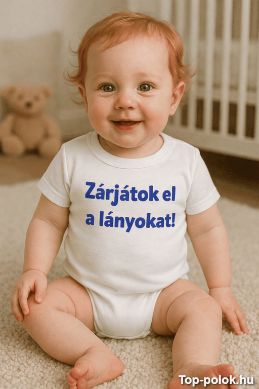 Ha olyan vicces baba body ajándék kell, amin mindenki felnevet, meg is találtad: „Zárjátok el a lányokat!” – egy mondat, ami egyből beindítja a családi poénokat és a fotóáradatot 😄