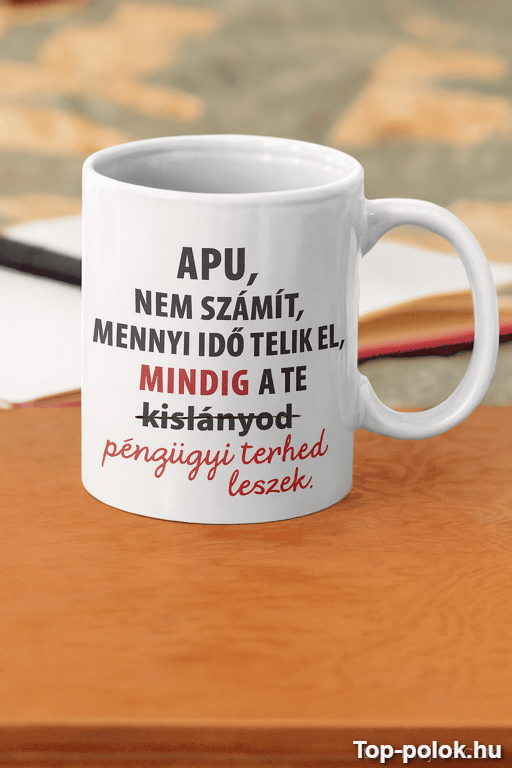A vicces bögre apának ajándék kategória koronázatlan királya: egy poén, ami egyszerre cuki és pimasz. Ha apu bírja a szarkazmust, ezzel a bögrével minden korty egy mosoly lesz. 😄