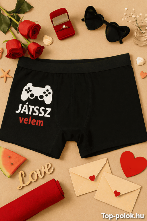 Ha olyan vicces férfi alsó ajándék kell, ami nem csak megnevettet, hanem azonnal beindítja a poénkodást, a „Játssz velem” felirat telitalálat. Kicsit pimasz, nagyon játékos, és pont annyira kétértelmű, hogy mindenki érteni fogja 😄