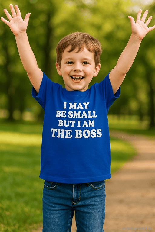 Az “I MAY BE SMALL BUT I AM THE BOSS” feliratú gyerekpóló tökéletesen kifejezi azt, amit minden szülő tud: a legkisebb személy a családban valójában a legnagyobb főnök. 👑