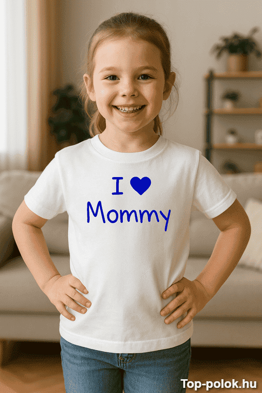 Ez a „I ❤ Mommy” gyerekpóló egy mini szerelmi vallomás… csak épp Anyunak. 😄 A poén benne az, hogy nincs mellébeszélés: a családi ranglista első helye ki is van hirdetve.