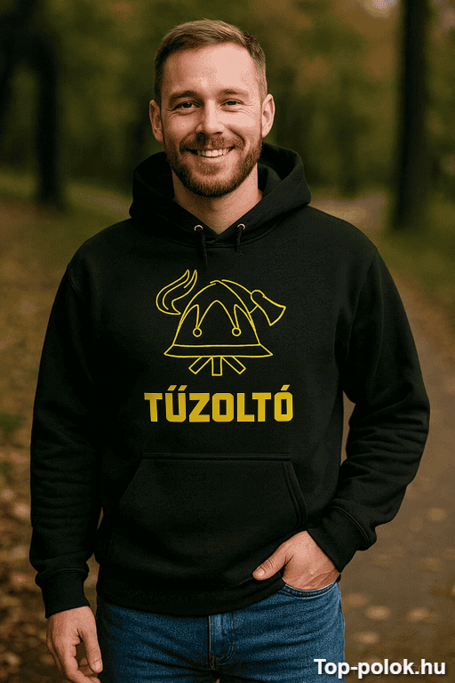A „Tűzoltó” felirat miatt ez a vicces tűzoltós kapucnis pulóver azonnal beszédtémát csinál – és pont ezért lesz belőle kedvenc darab a hétköznapokban és a bulikban is.
