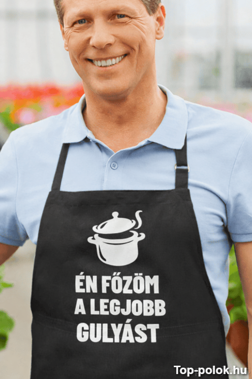 Tökéletes ajándék barátnak, párodnak vagy annak a kollégának, aki minden összejövetelen „csak gyorsan összedob” egy legendás gulyást. Add születésnapra, névnapra, házibulira, kerti partira vagy céges főzőversenyre – és nézd, ahogy a viselője már a tálalás előtt sztár lesz. 🎁