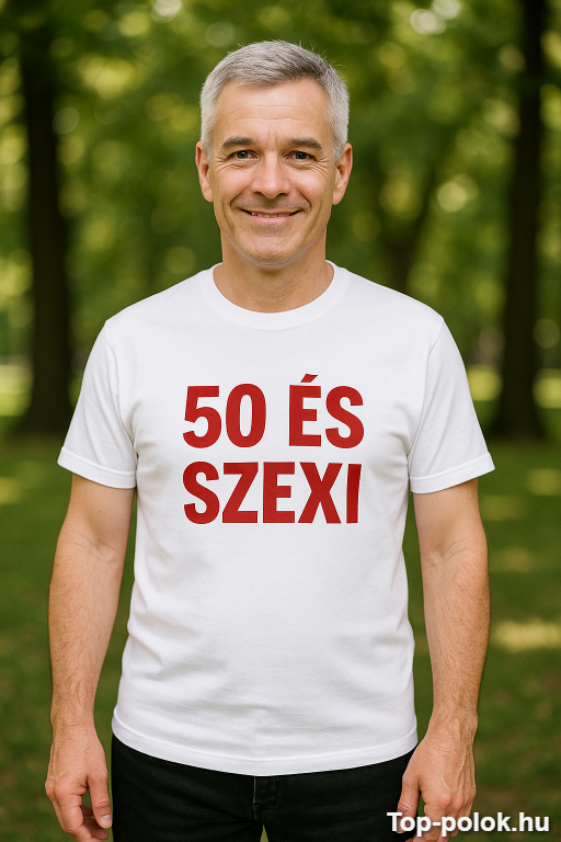 Ha olyan vicces póló ajándék kell, ami egyetlen mondattal felteszi a koronát az ünnepelt fejére, meg is van: „50 és szexi”. Ez a poén nem finomkodik – pont ettől működik. 😉