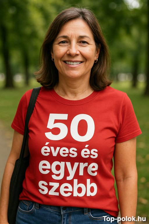 Ha olyan vicces póló ajándék kell, ami egyszerre bók és poén, ez telitalálat. A felirat („50 éves és egyre szebb”) pont annyira pimasz, hogy mindenki mosolyogjon, és pont annyira kedves, hogy az ünnepelt büszkén viselje 😉