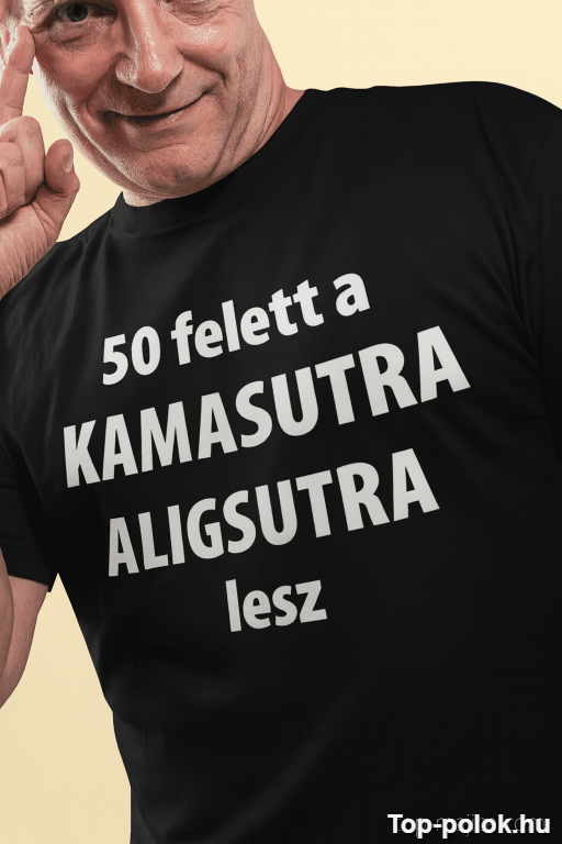 Ha olyan vicces póló ajándék kell, ami nem csak mosolyt csal az arcokra, hanem azonnal témát is ad, ez a darab telitalálat. A „50 felett a KAMASUTRA ALIGSUTRA lesz” felirat pont annyira csípős, amennyire kell – ízlésesen pajzán, és brutál vicces. 😏