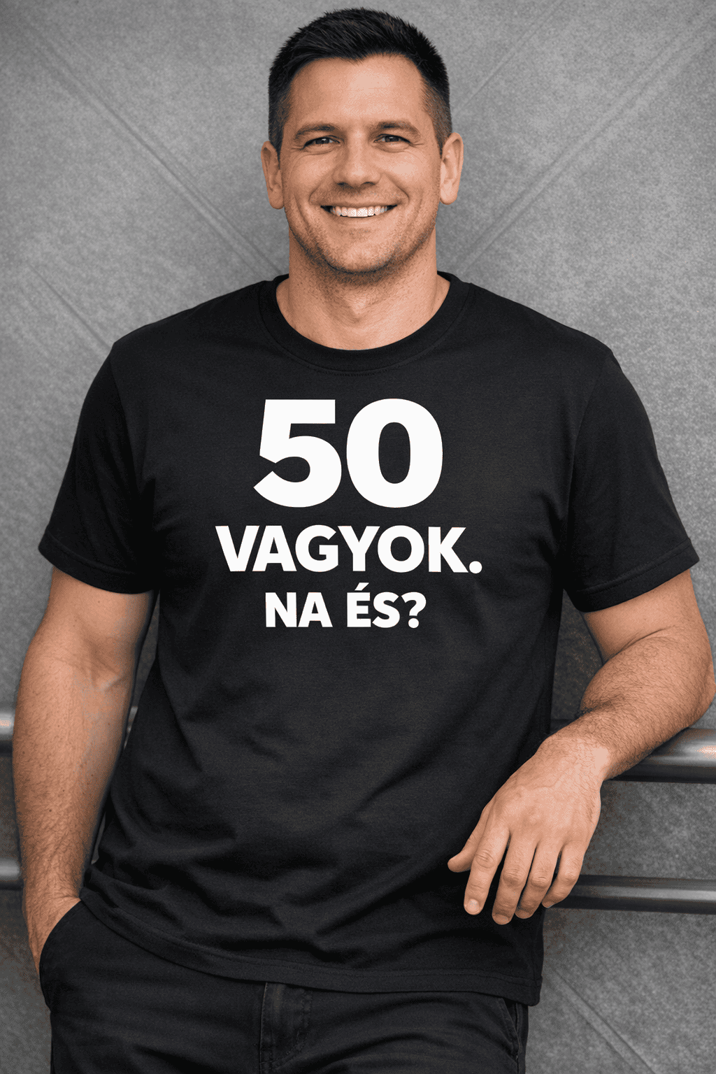 Amikor belépesz a szobába ebben a pólóban, mindenki tudja: az ötven nem kor, hanem állapot. A fekete alapon fehér felirat garantálja a mosolyt, a selfie-ket és egy kis egészséges irigységet is. 😎