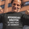 A „A horgászat terápia” felirat azonnal elmond mindent: itt a béke a vízparton kezdődik 😄 Ha kell egy csípős, de szerethető poén a horgászoknak, ez a póló betalál.