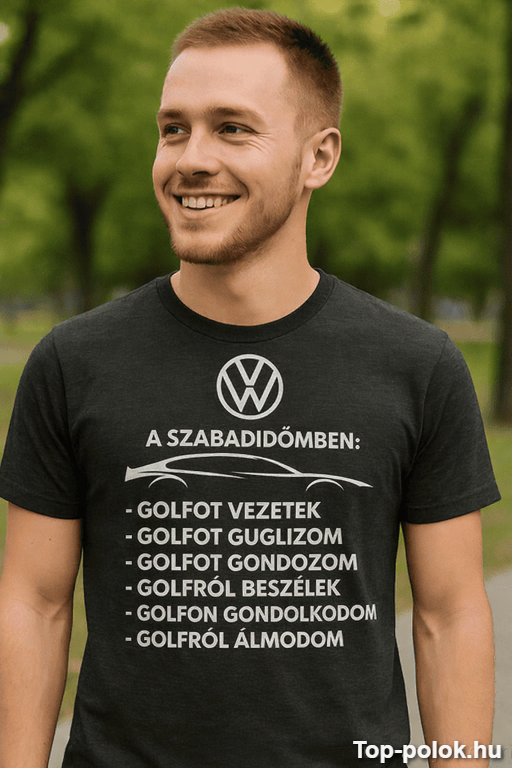 Ez a vicces póló Golf szabadidő hangulatban pont azt mondja ki, amit a környezeted már rég sejt: nálad a szabadidő nem pihenés, hanem Golf-mánia. A felirat sorban leleplezi a napi rutint – vezetem, guglizom, gondozom, beszélek róla, gondolkodom rajta, álmodom róla – és ettől lesz ellenállhatatlanul találó 😄