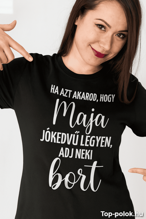 Van az a barát, kolléga vagy párod, aki egy hosszú nap után csak annyit mond: „oké, hol a bor?” Na, neki készült ez a vicces feliratú póló: „Ha azt akarod, hogy … jókedvű legyen, adj neki bort.” 😄