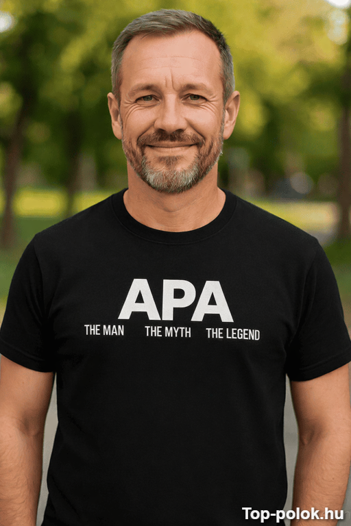Ez a vicces póló apa ajándék azoknak szól, akiknél az apaszerep nem mellékszál, hanem főszerep. A felirat („Apa The man The myth The legend”) pont úgy odaszúr, hogy közben imádnivalóan menő marad. 😉