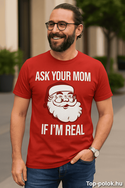 Ez a vicces póló ajándék azoknak szól, akik nem ijednek meg egy csipetnyi provokációtól. Az „Ask your mom if I’m real” felirat pont annyira merész, hogy minden társaságban megállítsa a beszélgetést… aztán beindítsa a röhögést 😏