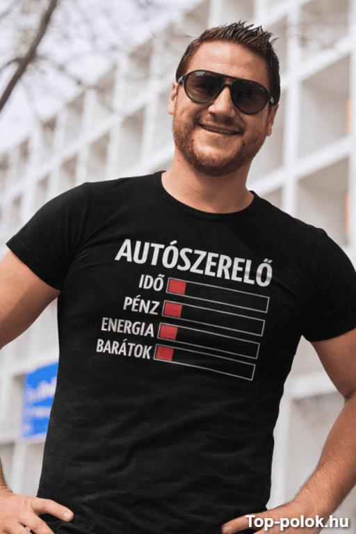 Ez a vicces póló autószerelő ajándék azoknak szól, akik pontosan tudják, hogy a nap nem 24 órából, hanem határidőkből, számlákból és egy utolsó „rá tudnál nézni?” kérdésből áll. A felirat (Autószerelő – Idő – Pénz – Energia – Barátok) úgy odaszúr, hogy közben mindenki nevet rajta 😄