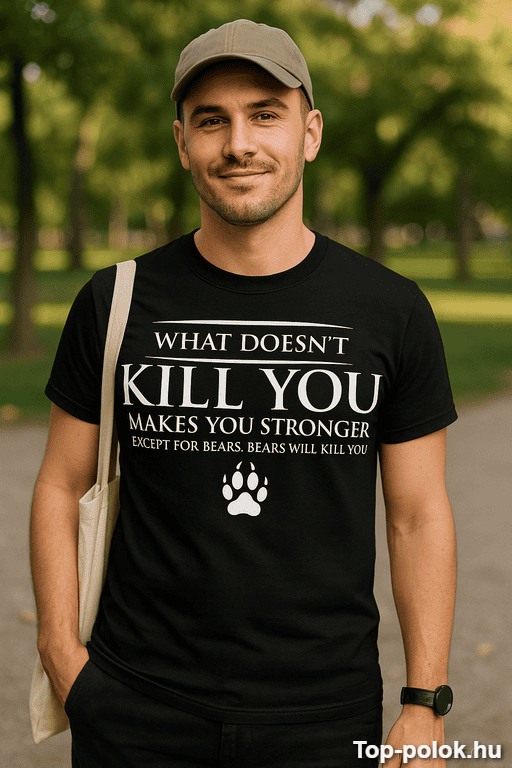 Tökéletes választás barátnak, párodnak vagy kollégának, aki imádja a túrázós sztorikat, a túlélős poénokat, vagy csak simán a csípős beszólásokat. Ha valaki mindig azt mondja, „amitől nem halsz meg, attól erősebb leszel”, ezzel a pólóval finoman (vagy nem is annyira finoman) helyre lehet tenni. 😅