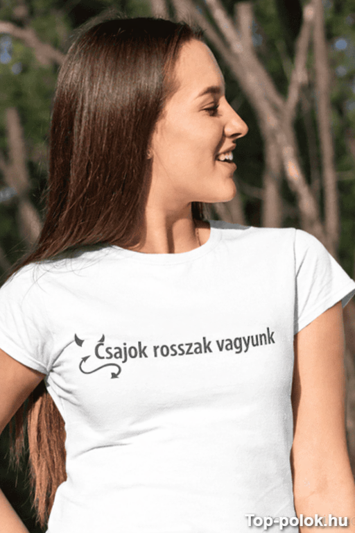 Ez a vicces póló csajok rosszak vagyunk hangulattal érkezik: egy mondat, ami azonnal mosolyt csal az arcokra, és finoman jelzi, hogy veled nem érdemes unalmasnak lenni 😄 A „Csajok rosszak vagyunk” felirat egyszerre vagány és játékos.