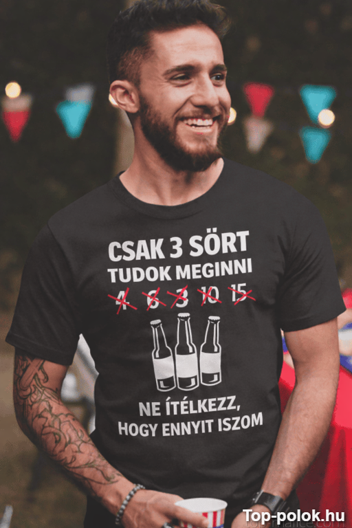 Ez a vicces sörös póló ajándék azoknak szól, akiknél a „csak 3” valahogy mindig gyanúsan rugalmas szám. A felirat („4, 6, 10, 15… Ne ítélkezz!”) annyira pimasz, hogy már ettől jobb kedve lesz a társaságnak. 😄