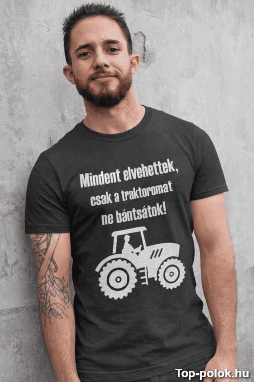Ez a vicces póló traktoros ajándék azoknak szól, akiknél a traktor nem hobbi, hanem életérzés. A „Mindent elvehettek, csak a traktoromat ne bántsátok!” mondat pont olyan, amit egy igazi géprajongó gondolkodás nélkül felvállal – mosollyal, de komolyan 😉