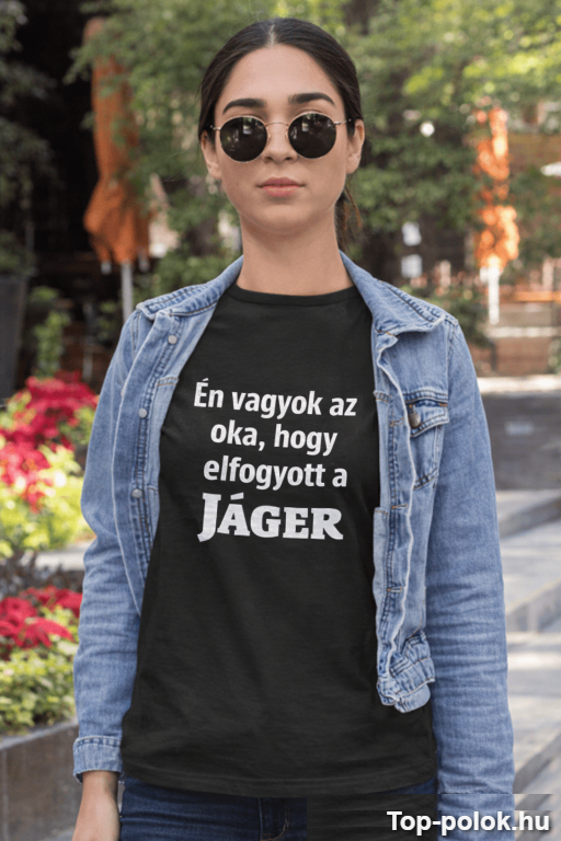 Ez a vicces póló jáger rajongóknak készült, akik nem csak mesélik a sztorikat, hanem ők a sztori. A „Én vagyok az oka, hogy elfogyott a Jáger” felirat az a pimasz poén, ami egy pillanat alatt felpörgeti a hangulatot 😄