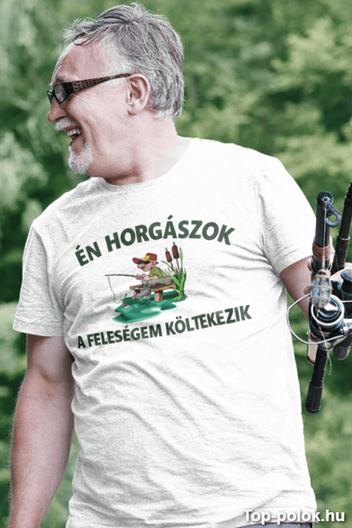 Ez a vicces horgász póló ajándék azoknak szól, akik szerint a kapás nem csak a vízen, hanem otthon a pénztárcánál is történik. A „Én horgászok, a feleségem költekezik” felirat pont annyira pimasz, hogy minden társaságban mosolyt csaljon elő.