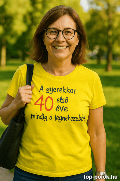 Van az a születésnap, amikor már nem a szám a lényeg, hanem az, hogyan röhögünk rajta. A „A gyerekkor első 40 éve mindig a legnehezebb!” felirat pont ezt tudja: csípős, kedvesen pimasz, és garantáltan beszédtéma lesz 🎉