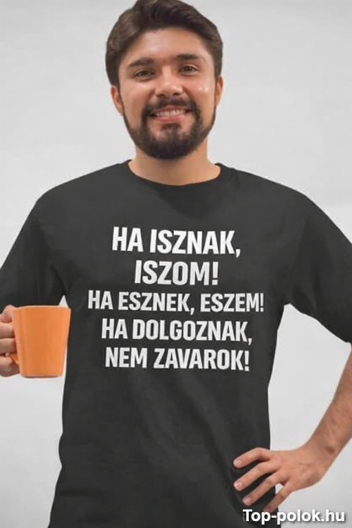 A vicces póló lusta ajándék kategória királya: „Ha isznak, iszom! Ha esznek, eszem! Ha dolgoznak, nem zavarok!” 😄 Ezzel egy mondatban elmondod, hogyan működik a motiváció. Tökéletes, ha a humorod kicsit pimasz, de nagyon igaz.