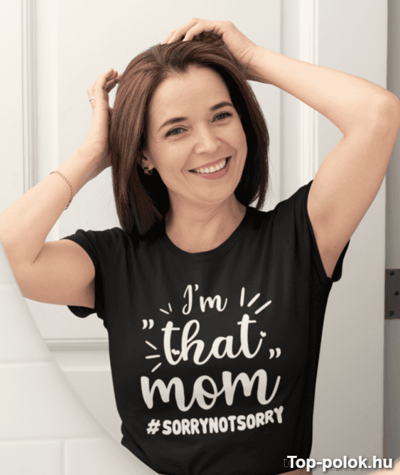 Ez a vicces póló anyának ajándék akkor talál be igazán, ha az anyuka büszkén vállalja: ő bizony „that mom”. A felirat (I’m “that” mom #SORRYNOTSORRY) pont annyira pimasz, amennyire kell – mosolyt csal, és közben jelzi: itt egy erős karakter érkezett. 😎