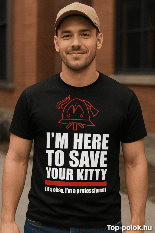 A vicces póló I’m here to save your kitty felirattal azonnal leveszi a lábáról azt, aki érti a kétértelmű poént. Tökéletes, ha egy tűzoltós humorú ajándékkal szeretnél nagyot villantani. 😄