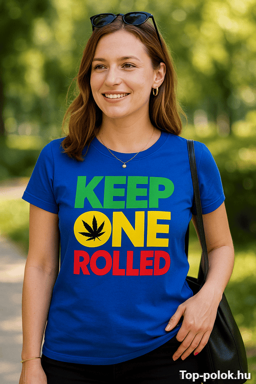 Ez a vicces rasta póló a „KEEP ONE ROLLED” felirattal pont annyira pimasz, amennyire kell: elég egy pillantás, és már indul is a kuncogás. Ha szereted a könnyed, kicsit csibész poénokat, ez a darab neked dolgozik 😉