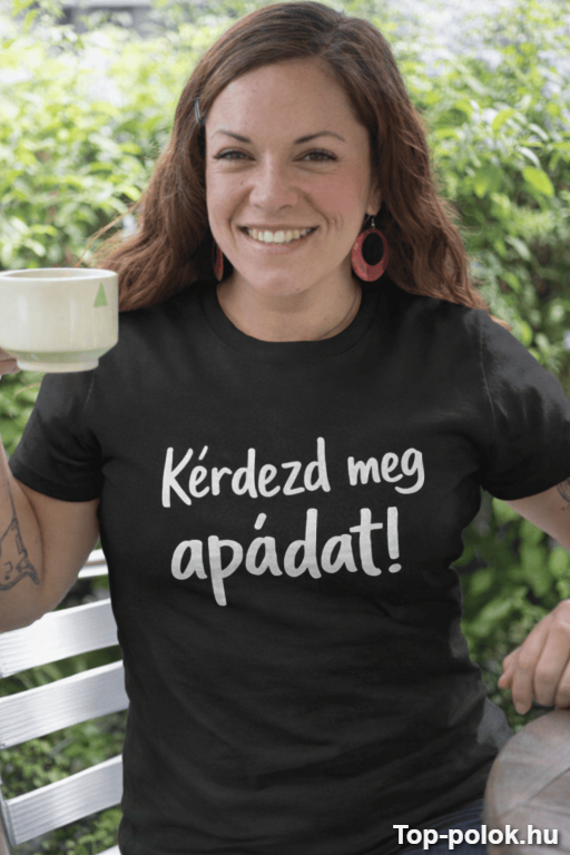 A vicces póló kérdezd meg apádat feliratával azonnal bedobja a poént, amikor valaki túl sokat kérdez. Finoman pimasz, mégis imádnivaló – pont az a típus, amit mindenki megjegyez. 😄