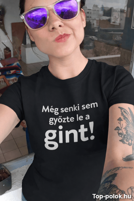 Ha olyan vicces póló ajándék kell, ami egyetlen pillantással beindítja a poéncunamit, megvan: „Még senki sem győzte le a gint!” – és kész, a hangulat máris magasabb fokozatra kapcsol. 😄