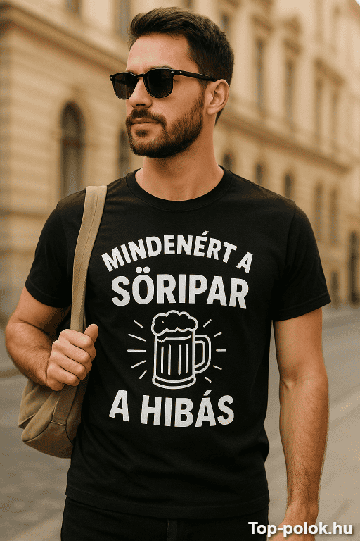 Van az a nap, amikor minden összejön… és persze „valaki” biztos tehet róla. A „Mindenért a söripar a hibás” felirat pont azt a csípős humort hozza, amitől a társaság röhög, te pedig ártatlanul vállat vonsz. 😄