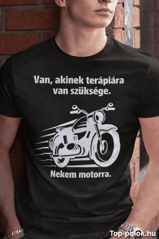 Ez a vicces póló motor témában pontosan azt mondja ki, amit minden megszállott tud: „Van, akinek terápiára van szüksége. Nekem motorra.” Kicsit pimasz, nagyon igaz, és garantáltan beszédtémát csinál belőled a társaságban. 😎