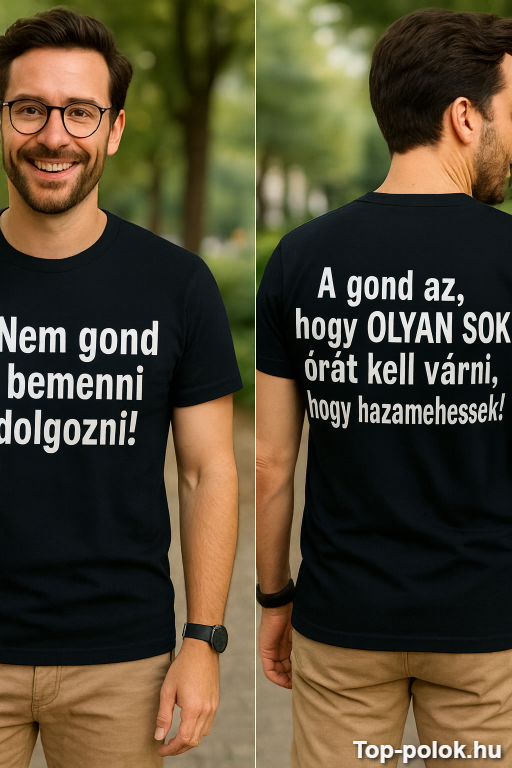 Ez a póló kimondja azt, amit mindenki gondol hétfő reggel: bemenni még csak-csak… de hazamenni túl messze van. Ha a munkahelyi humor nálatok túlélési stratégia, ezzel telibe találsz. 😄