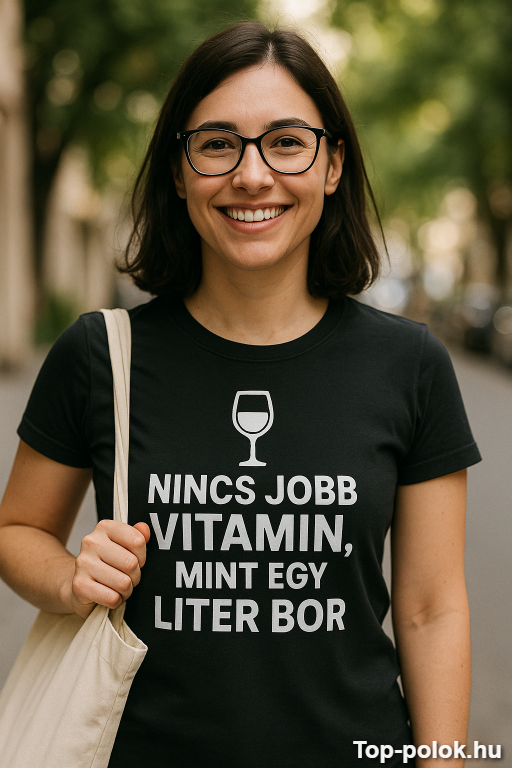 Van az a barát, kolléga vagy párod, aki szerint a jókedv a legjobb „vitamin” — és ezt nem is titkolja. A „Nincs jobb vitamin, mint egy liter bor” felirat pont nekik szól: egy mosolyra késztető, kicsit csibészes üzenet, amitől minden összejövetel könnyedebb lesz. 😄