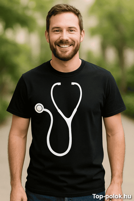 A sztetoszkópos poén azonnal jelzi: itt valaki nem fél kimondani, amit gondol. Ha egy igazán vicces póló ajándék kell egészségügyes ismerősnek, ezzel garantált a kuncogás 😄