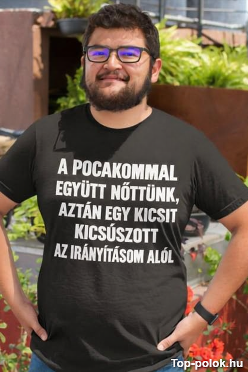 Ez a vicces póló pocak felirattal pont azt mondja ki, amit mindenki gondol, csak kevesen merik: „A pocakommal együtt nőttünk, aztán egy kicsit kicsúszott az irányításom alól.” Egyetlen mondat, és máris megvan a hangulat. 😄