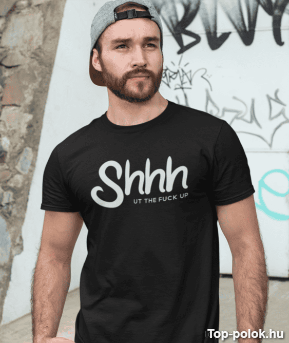 A vicces póló shut up nem finomkodik: a „Shhh UT THE FUCK UP” felirat pont olyan, mint amikor már a harmadik „na és mi újság?” után csak a szemed beszél helyetted. Ez a poénos „csend legyen” póló garantáltan leveszi a terhet a válladról – elég csak megjelenni benne. 🤫
