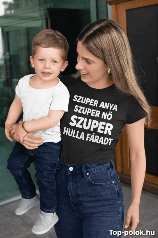 A vicces póló anya ajándék kategória új kedvence: „Szuper anya, Szuper nő, Szuper hulla fáradt”. Mert a szupererő néha annyi, hogy még felkelsz és végigviszed a napot. 😄