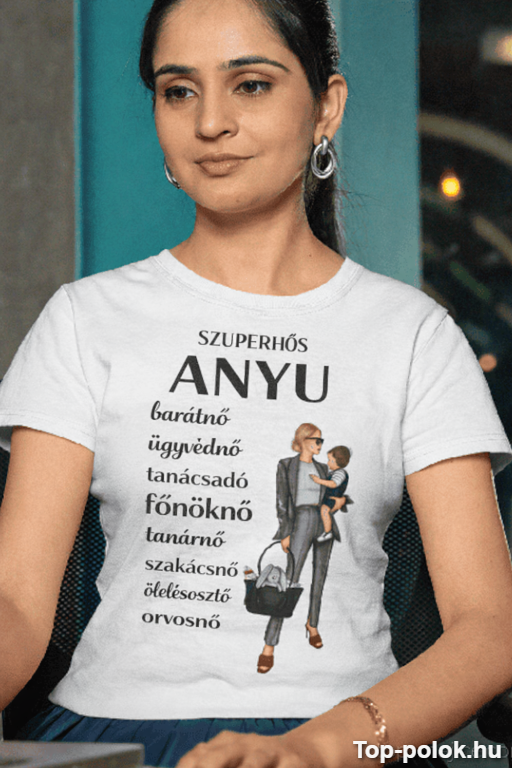 Ez a vicces póló anyák napi ajándék kategóriában igazi telitalálat: a felirat kimondja azt, amit mindenki tud, csak ritkán mond hangosan. Anyu nem csak anyu – ő a szuperhős, aki egy személyben barátnő, ügyvédnő, tanácsadó, főnöknő, tanárnő, szakácsnő, ölelésosztó és „doktor, mert mindenre van megoldása”. 🦸♀️