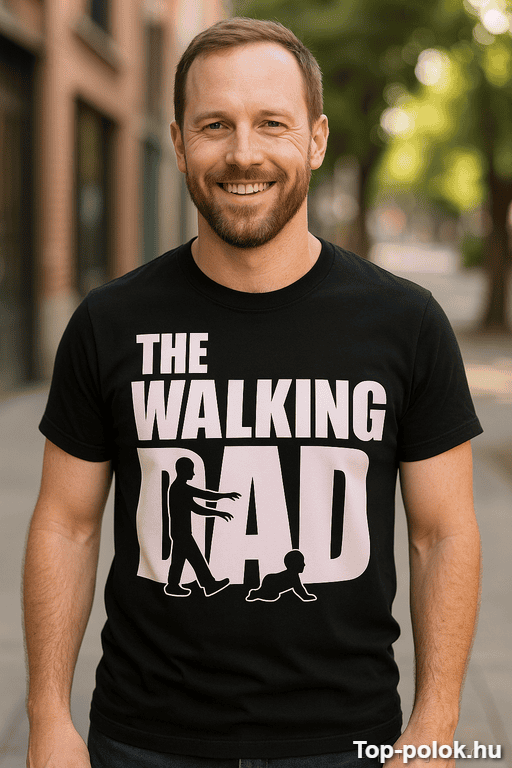 Van az a nap, amikor apa kicsit fáradt, kicsit hős, és valahogy mégis mindent megold. A „The Walking Dad” felirat pont ezt a legendás „túléltem a reggelt” hangulatot hozza — egy mosollyal, amit mindenki ért 😄