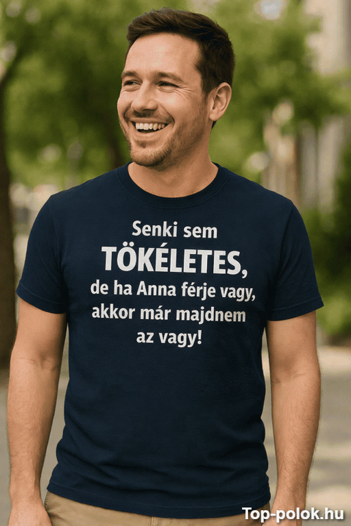 Ez a vicces póló tökéletes férj üzenettel pontosan azt a csípős bókot adja át, ami egyszerre kedves és pimasz. A poén lényege: senki sem tökéletes… de valakihez képest majdnem. 😉