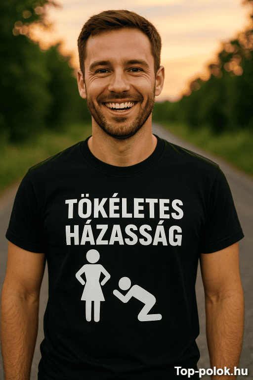 Ha egy vicces póló ajándék kell, ami egyszerre csípős és szerethető, ezzel telibe találsz. A „Tökéletes házasság” felirat olyan beszólás, amitől mindenki mosolyog – főleg azok, akik tudják, hogy a tökéletes csak a viccekben létezik 😉
