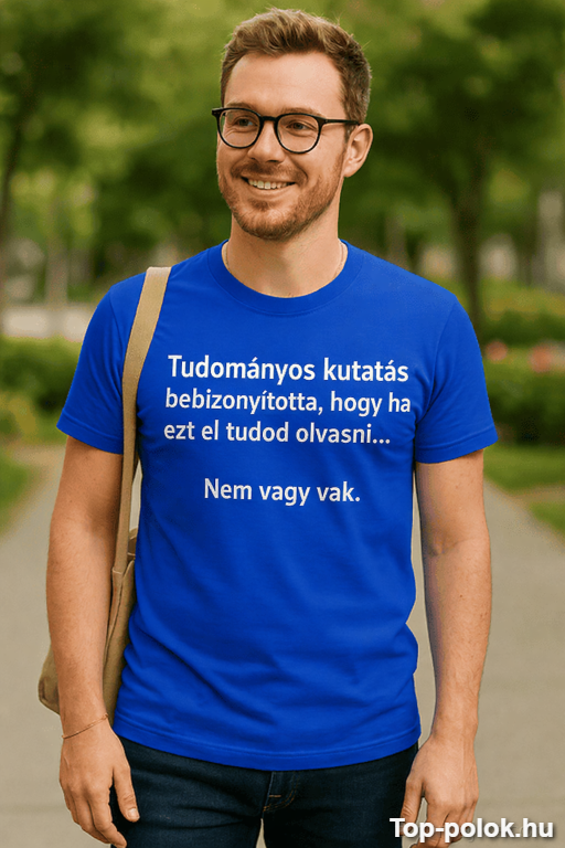 Ez a vicces póló tudományos kutatás témában olyan, mintha egy mini kísérletet viselnél: „Tudományos kutatás bebizonyította, hogy ha ezt el tudod olvasni… Nem vagy vak.” És igen, ettől mindenki egyszerre kuncog és próbálja elolvasni. 😄